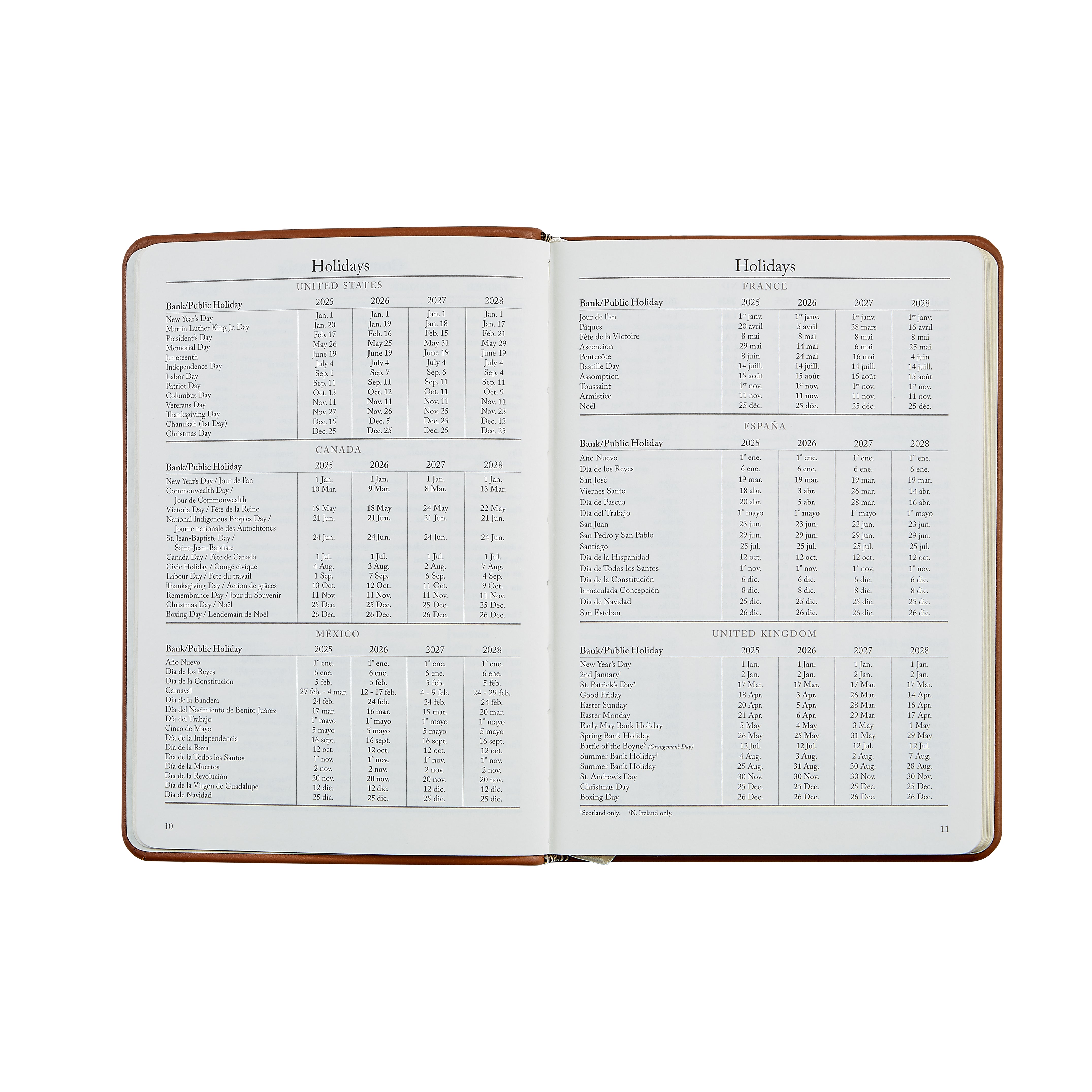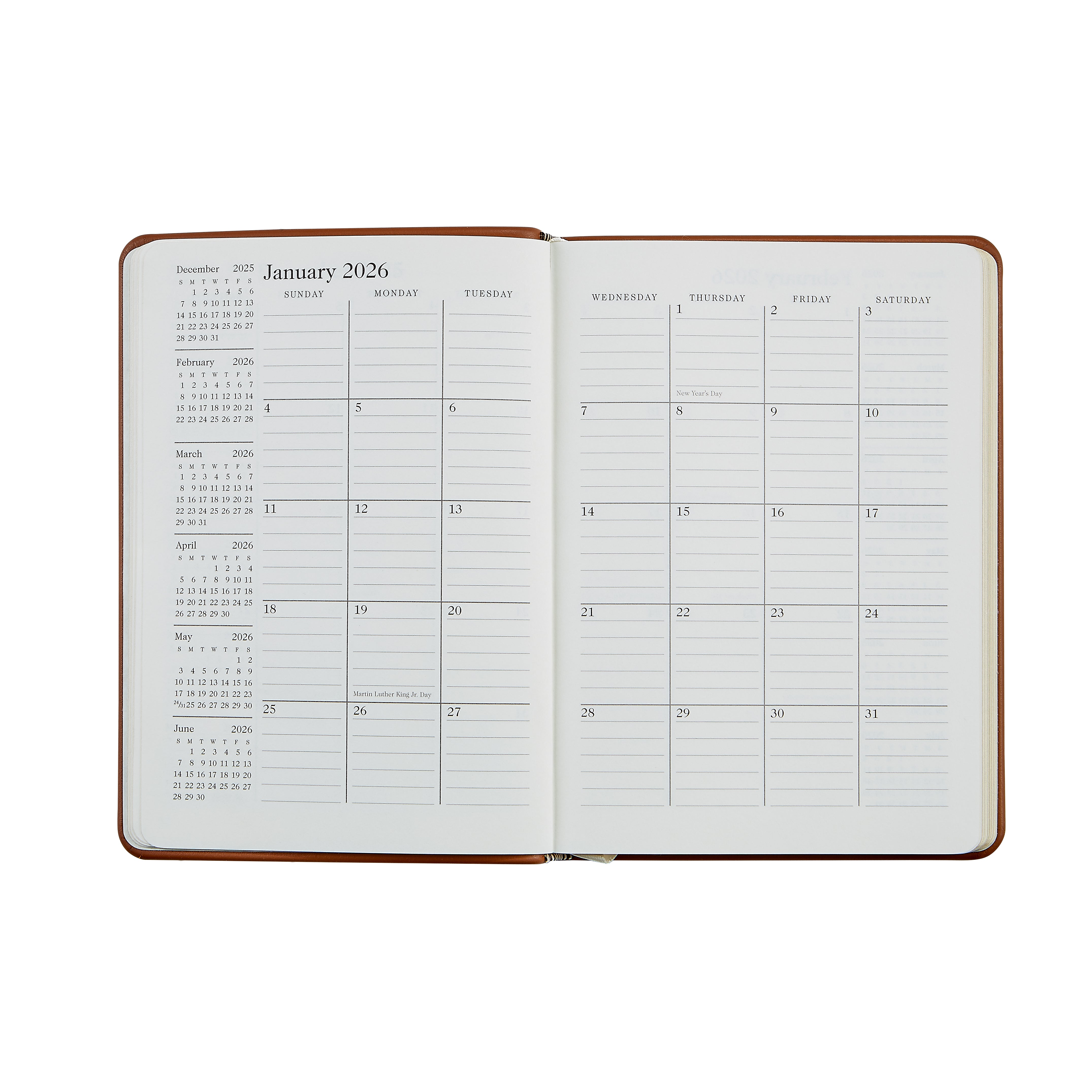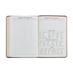 Our leather notebook makes the perfect accessory for home or office. This versatile notebook planner features month and week-at-a-view appointment pages plus pages for keeping notes on your daily activities. An ideal social agenda that includes recreational travel information, and the U.S. and international holidays.