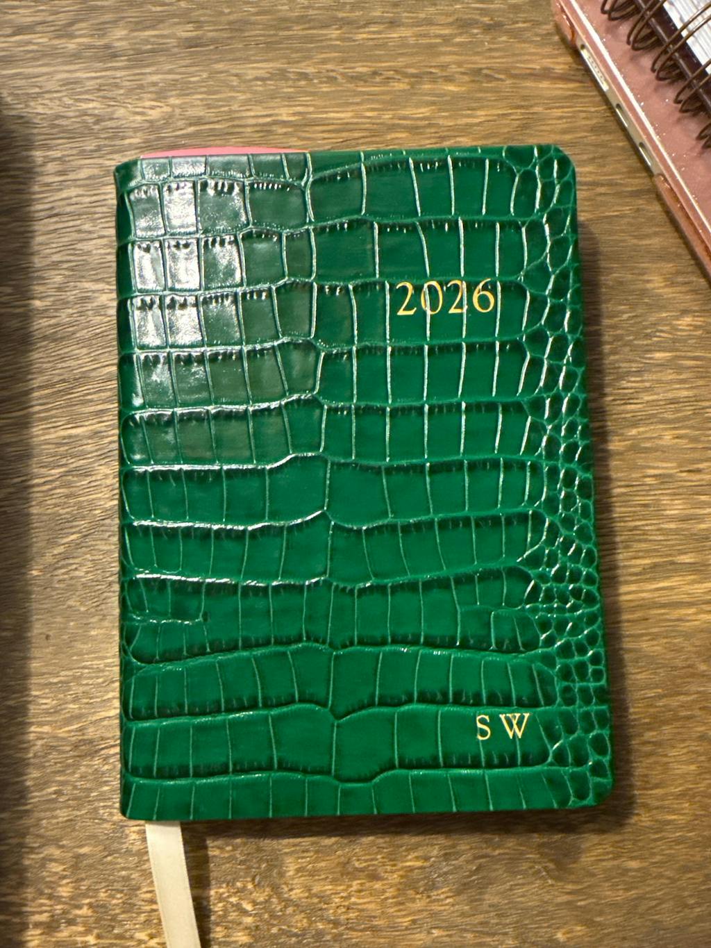 Our leather notebook makes the perfect accessory for home or office. This versatile notebook planner features month and week-at-a-view appointment pages plus pages for keeping notes on your daily activities. An ideal social agenda that includes recreational travel information, and the U.S. and international holidays.